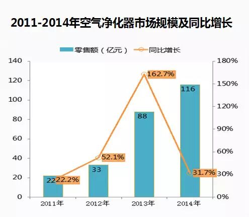 数据显示,我国从2012年开始污染天数日渐增多,到了2013年雾霾全面爆发后,空气净化器市场也快速反应,销售规模持续上升,到2013年12月也是雾霾最为严重的时点,销量迎来高峰。